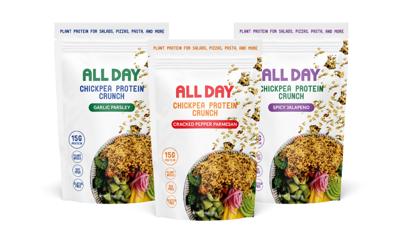 All Day Chickpea Protein Toppers are crunchy ‘crouton alternatives’ that are high-protein, plant-based, soy free, gluten-free, and versatile.
